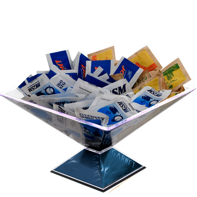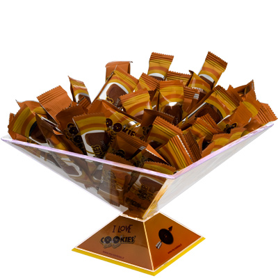 Ispirato alla famosa piramide contrapposta del museo del Louvre, può essere utilizzato per ogni prodotto di consumo da collocare sul banco del bar (bustine zucchero, biscotti, snack, caramelle...), diventando al contempo espositore ed oggetto di uso diretto